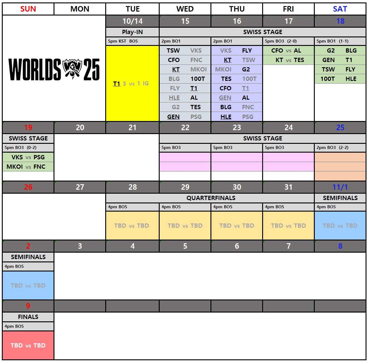 Subject [LOL] 2025 월즈 일정표 (수정됨)