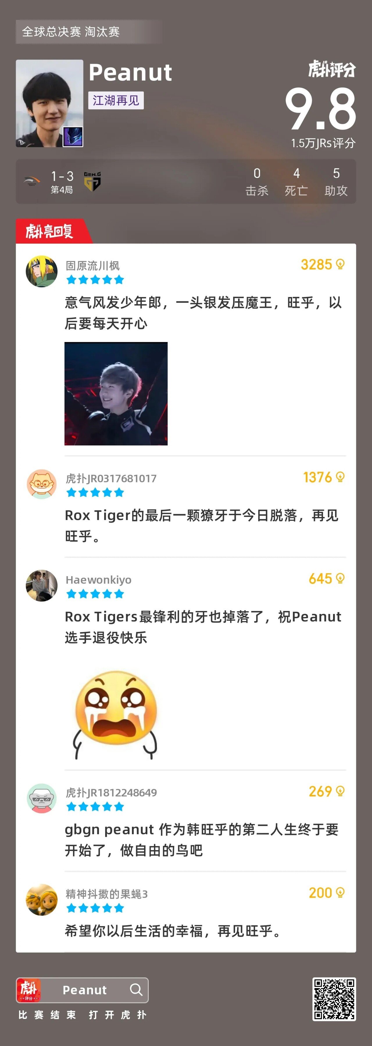 [이 경기에서 10명중 평점 1위가 피넛.  중국팬들도 피넛의 10년 세월에 리스펙을 보냈습니다]