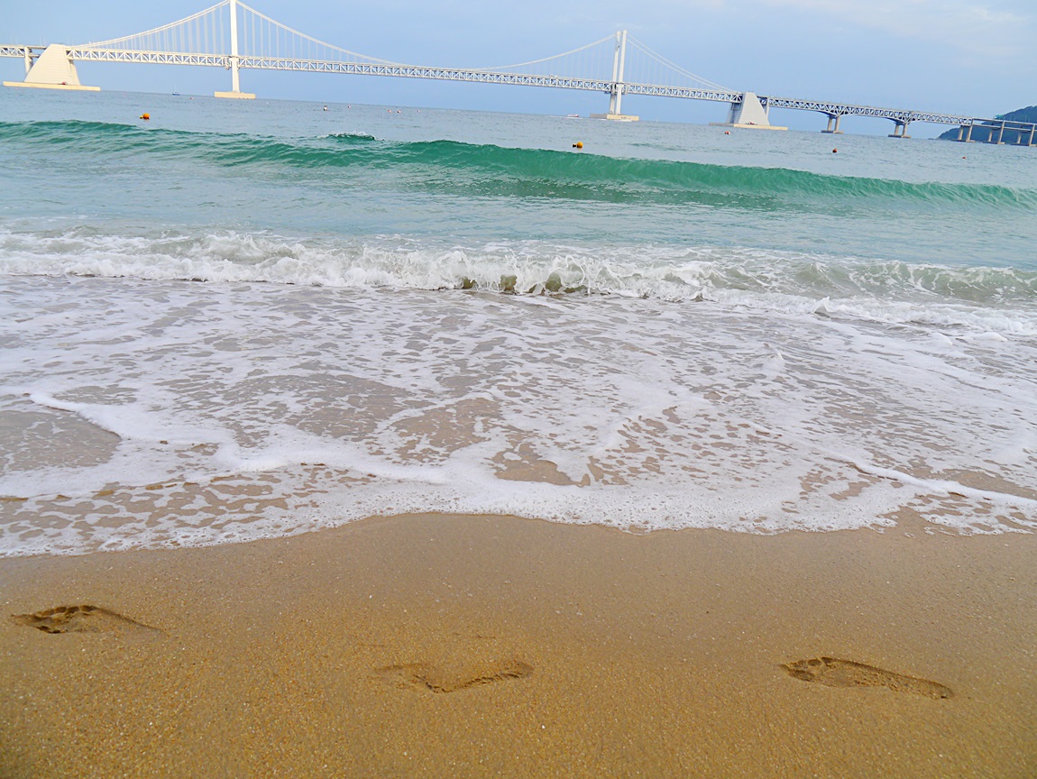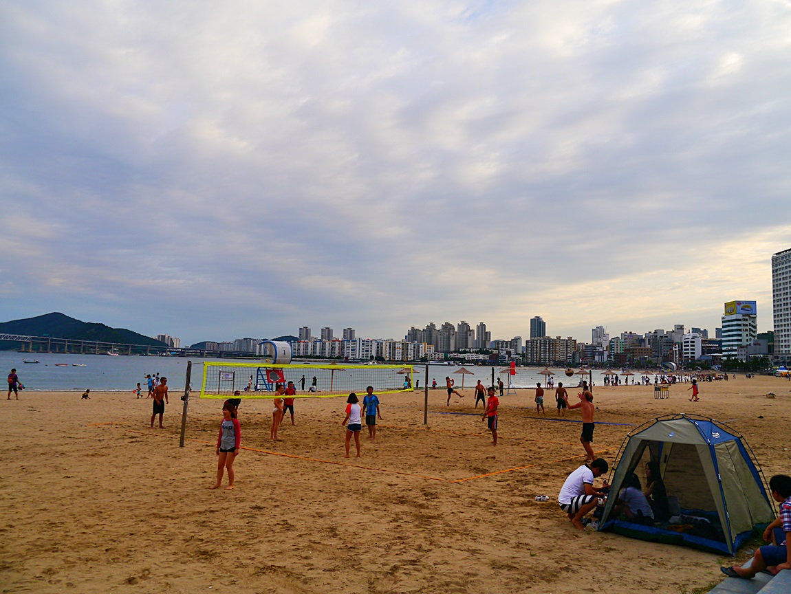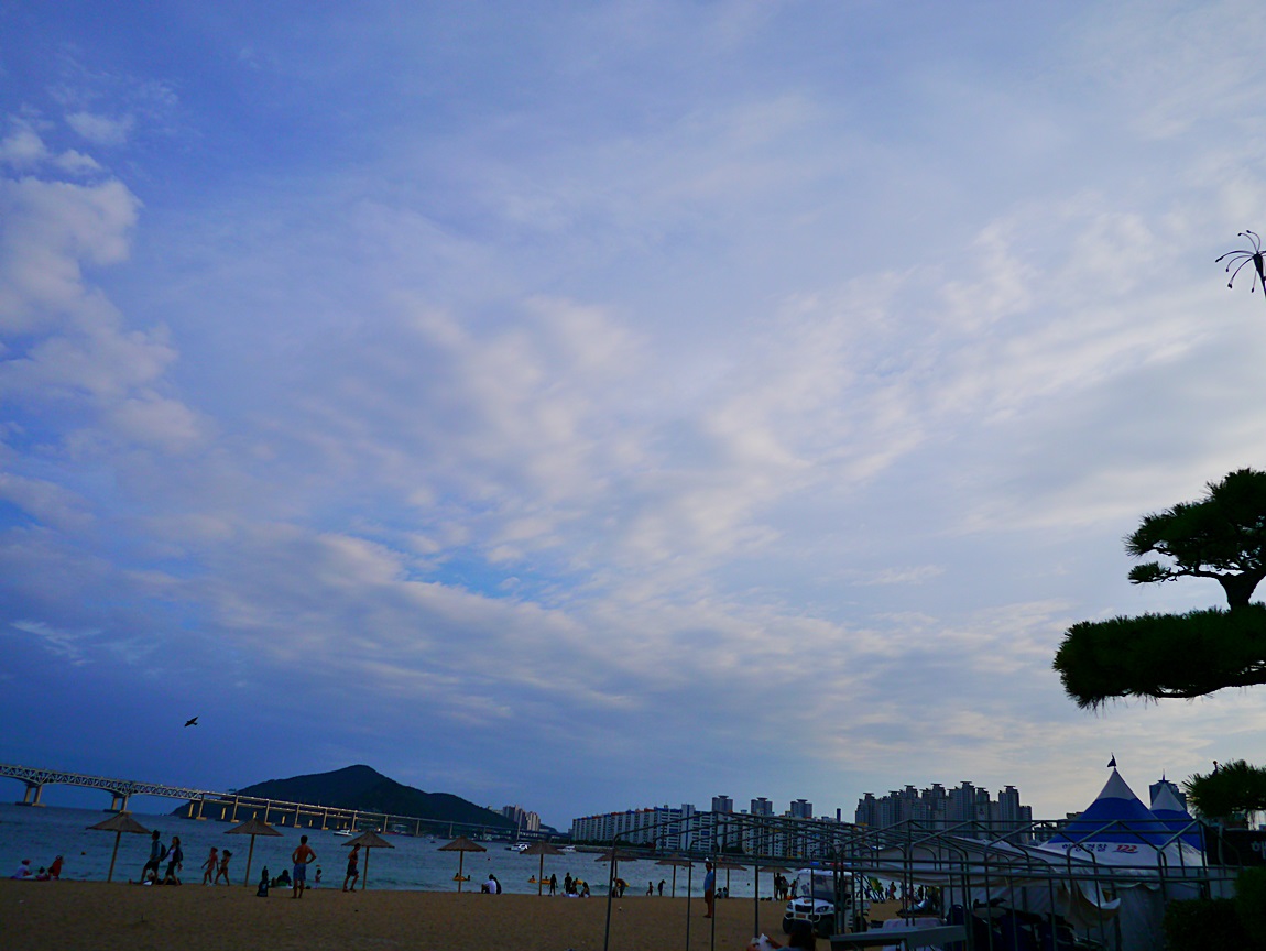 옛날 광안리하면 근처 주민들이 술 먹고 놀기 좋은 곳이라는 이미지였는데 요즘은 근처 대학교에 있는 외국인들이 늘어서 좀 글로벌해졌죠. 외국인들도 간단하게 즐기고 가는 느낌? 우리나라 사람들은 파라솔아래에 모여있는데 비해 외국인들은 파라솔을 피해서(!) 일광욕을 즐기는 대조적인 모습이 인상적이었어요.