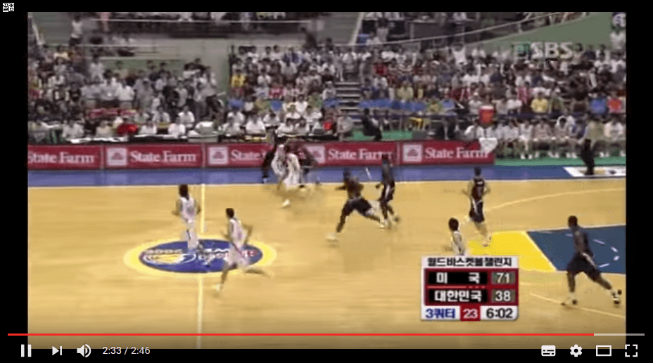 사실 압살 장면은 저 장면보다 이규섭의 와이드오픈 3점슛을 르브론이 점프로 떡블락하는 장면이죠 크크크크 저런 엘리웁덩크 향연보다 더 심한 능욕...해외리그에서 우리나라 선수들이 여러명 성공한다한들 절대 못 이기겠다고 느꼈던 장면이었습니다.
