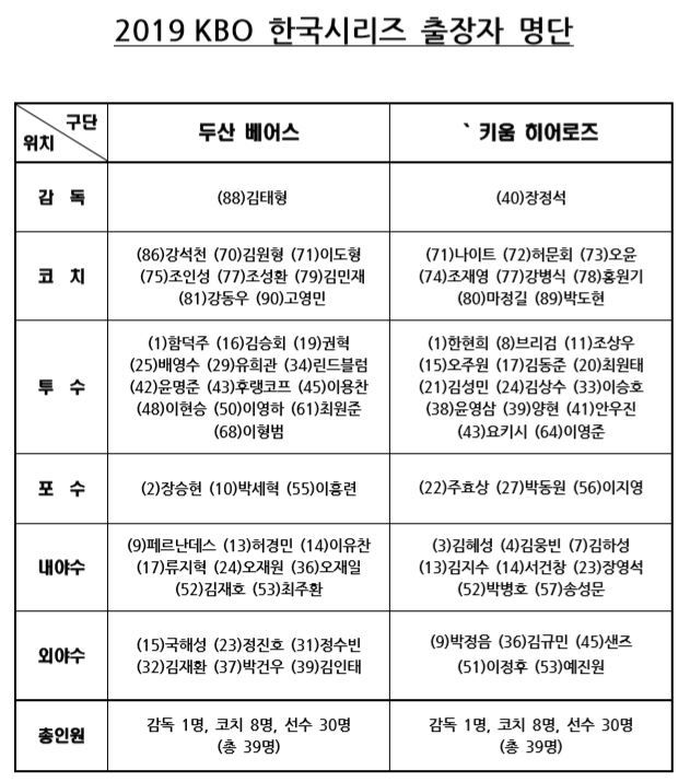 Subject [야구] 2019 KBO 리그 한국시리즈 2차전 키움 히어로즈 VS 두산 베어스 (수정됨)
