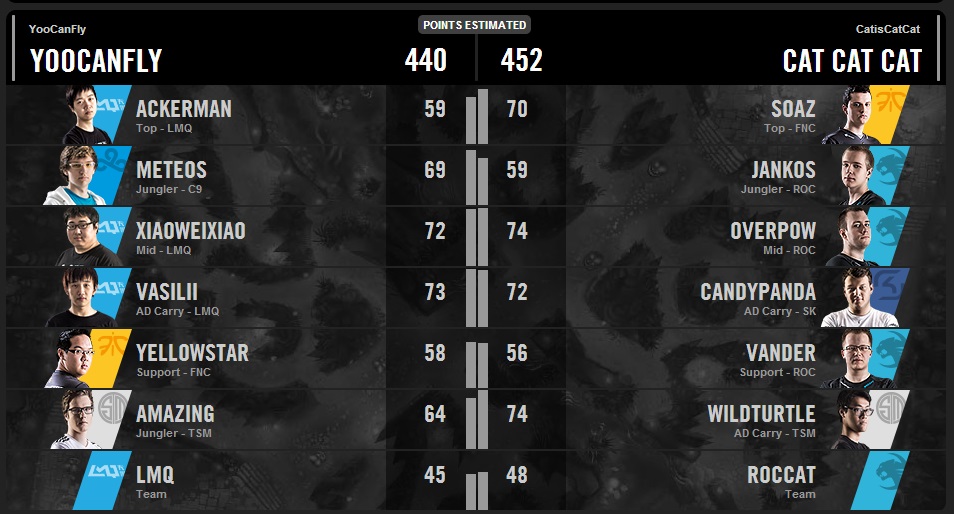 그리고 앞으로 해당 선수의 실제 LCS 일정도 같이 나오는 만큼. 점수 변동폭을 예측해 볼 수도 있습니다.