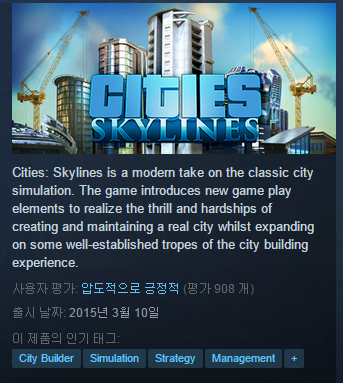 네. 어제자로 출시된, 시티즈 : 스카이라인의 후기입니다.